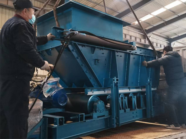 2022年1月5日,由山東礦安機電生產的變頻液壓甲帶給煤機在倉庫裝車,發(fā)往山西晉中。